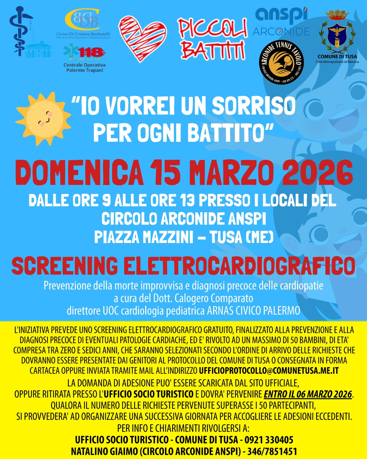 ''IO VORREI UN SORRISO PER OGNI BATTITO'' SCREENING ELETTROCARDIOGRAFICO DOMENICA 15 MARZO 2026